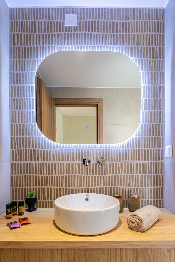 At the basement level you will find a fully organised cosy bedroom with a large double bed, a smaller smart android TV of 32 inches with Netflix and of course free Internet WiFi connection. Aircondition is also provided.